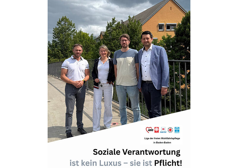 Die soziale Infrastruktur soll ein menschenwürdiges und fürsorgliches Leben für alle Bürgerinnen und Bürger im Stadtkreis Baden-Baden gewährleisten. Der für den Tourismus eingesetzte Slogan „The good-good life in Baden-Baden“ muss mindestens auch für die grundlegenden sozialen Belange der Bürgerinnen und Bürger gelten. Die Soziale Arbeit der freien Wohlfahrtspflege ist enorm wichtig, um sozial benachteiligten Menschen Anlaufstellen zu geben und Unterstützungsangebote zu bieten. Die Investitionen der Stadt Baden-Baden in soziale Gerechtigkeit und gesellschaftlichen Zusammenhalt sind effizient und wirkungsvoll. Die finanzielle Unterstützung und teils komplette Absicherung der Angebote der freien Wohlfahrtspflege durch die Stadt Baden-Baden sind grundlegend, um die notwendigen Strukturen und Prozesse zu erhalten. Die Arbeit der freien Wohlfahrtspflege muss von der Stadt Baden-Baden weiter uneingeschränkt unterstützt werden. Es darf keine Kürzungen geben